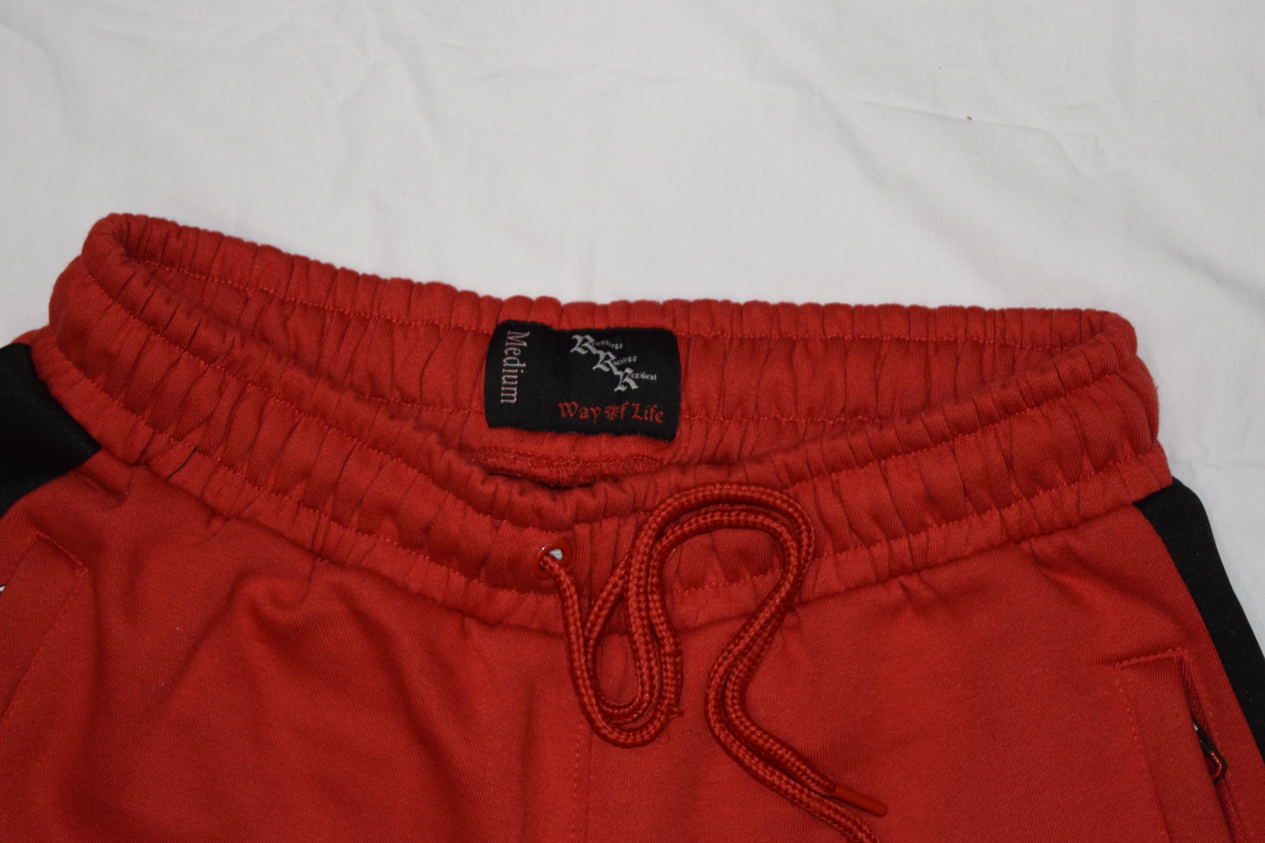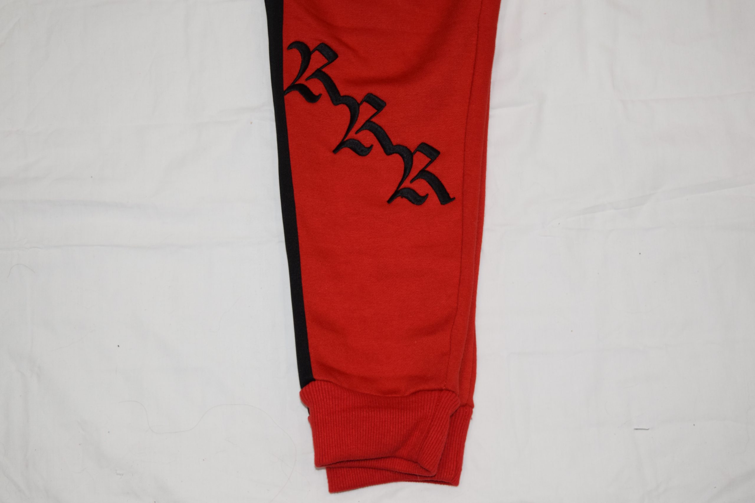 Our sweat suits are made from premium Grade A 100% cotton fleece. Everything has a fabric weight of 450 GSM for warmth, durability, and a high quality feel. The zip-up jacket features a silk-lined hood, while the pants include zippers on all pockets with custom red, white and black zipper handles.